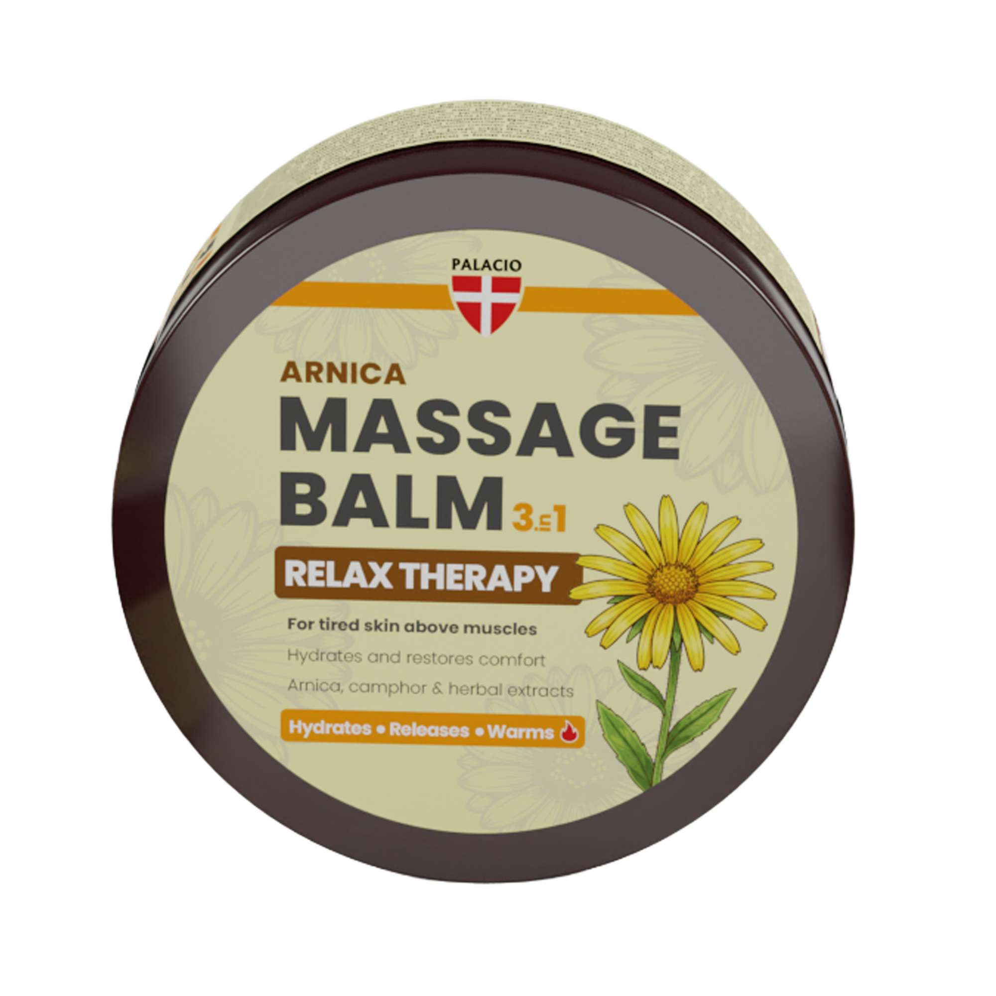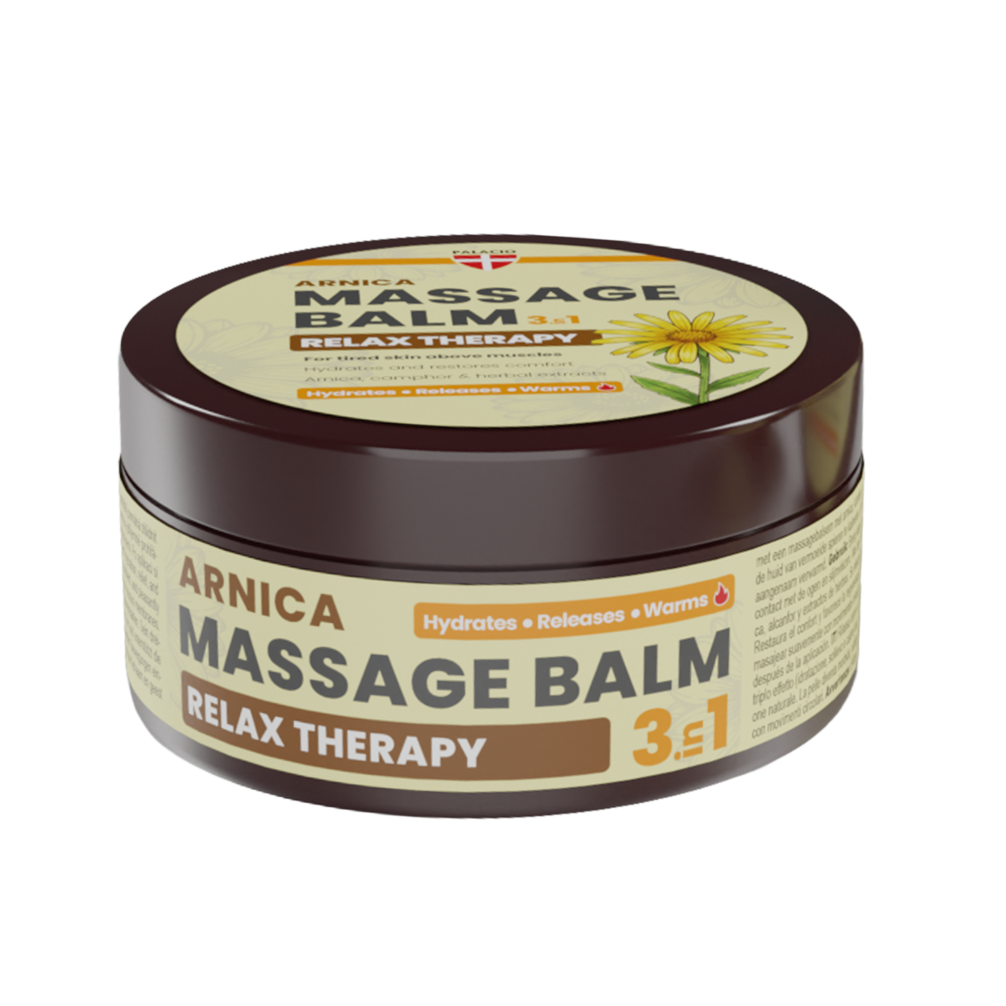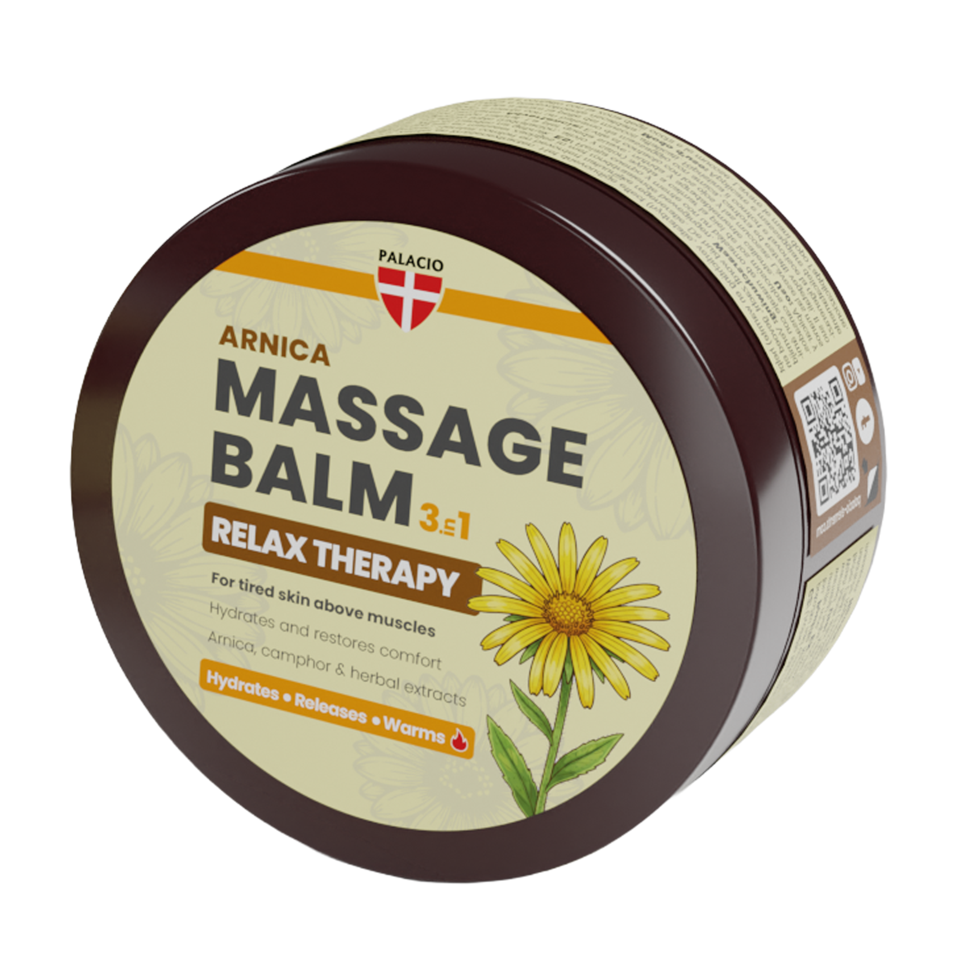 Njegov trojni učinek – hidratacija, olajšanje in ogrevanje – pomaga obnoviti udobje in podpira naravno regeneracijo kože. Arnika in kafra se tradicionalno uporabljata zaradi svojih sproščujočih lastnosti, kapsaicin pa zagotavlja nežen občutek ogrevanja. Mešanica zeliščnih izvlečkov, obogatena z rožmarinom in evkaliptusom, zagotavlja osvežilno in spodbudno masažno izkušnjo.