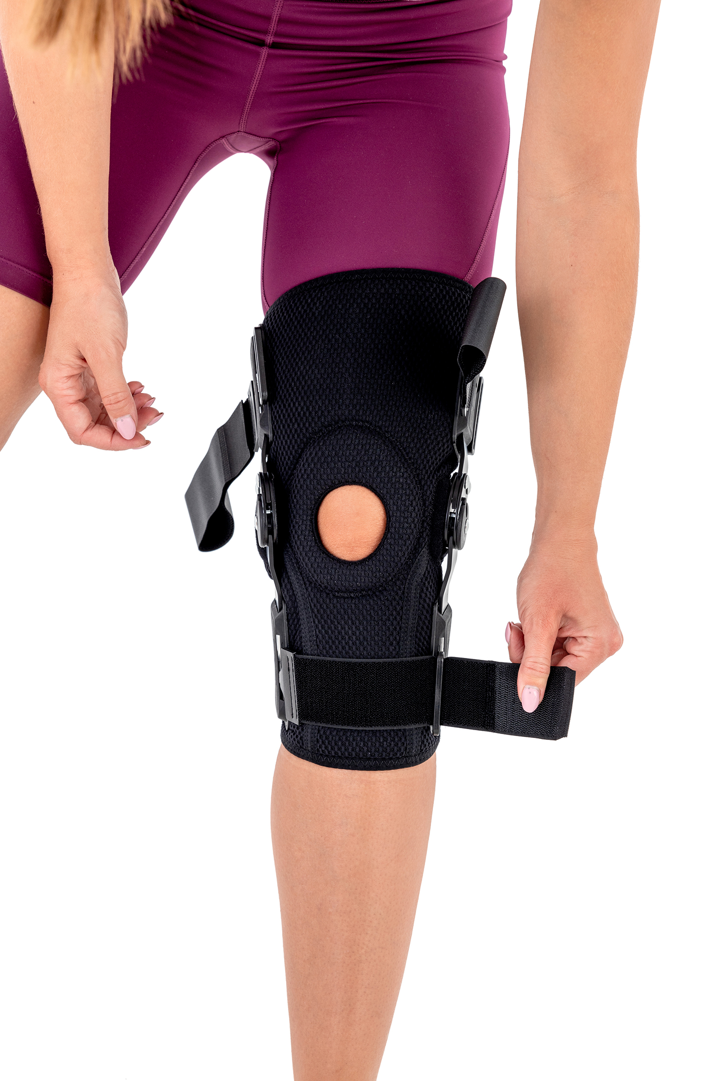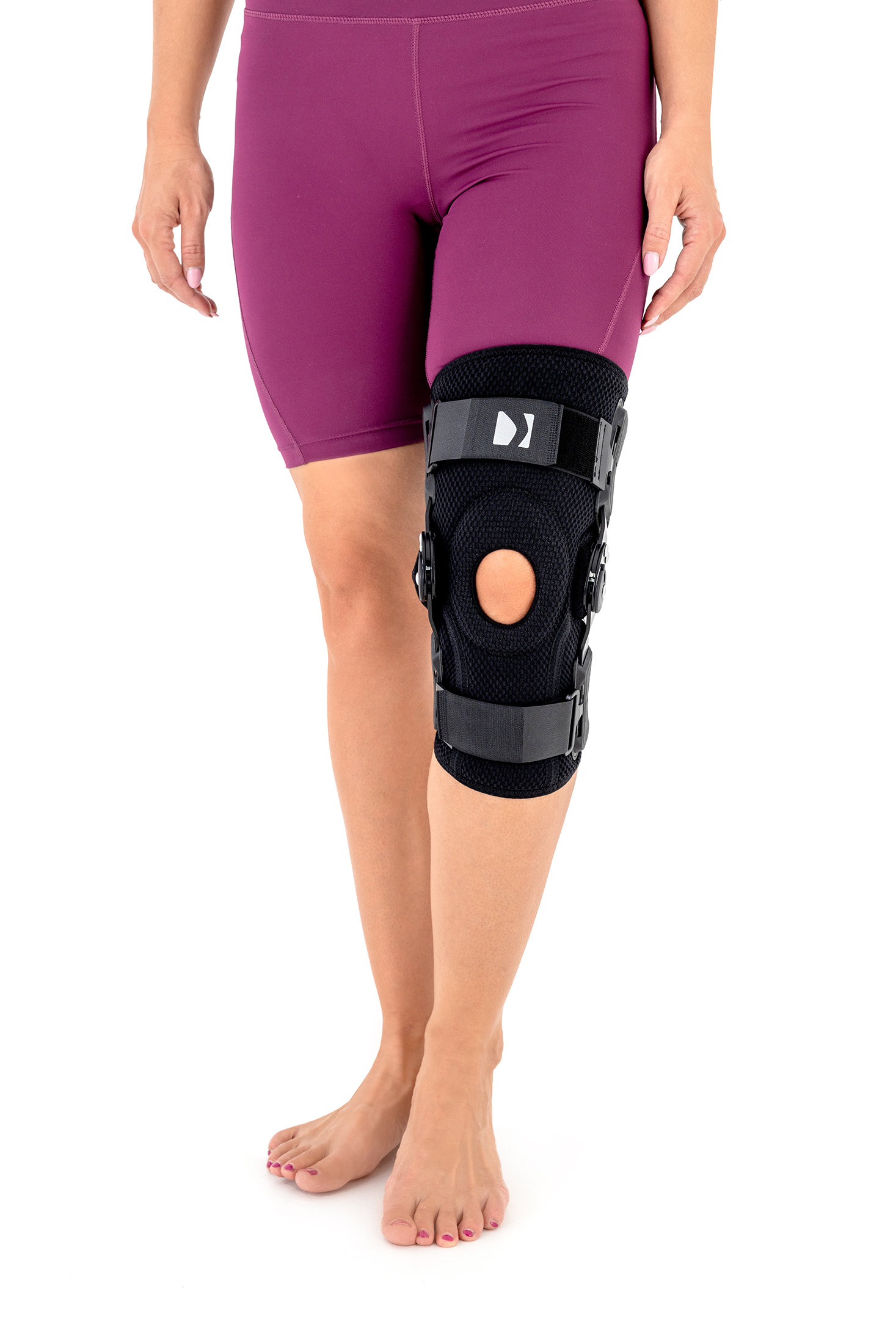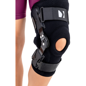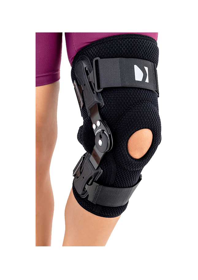Reh4mat kompaktna opornica za koleno z nastavljivim (15°) zglobom je vrhunska kolenska opornica, ki povečuje kakovost gibanja (hoje) in pomaga pri rehabilitaciji kolena. Zaradi svoje odprte strukture je zelo enostavna za namestitev (enostavno jo odprete, namestite okoli kolena in zaprete z ježki). Na sprednji strani ima tudi silikonski vložek za podporo pogačici.
