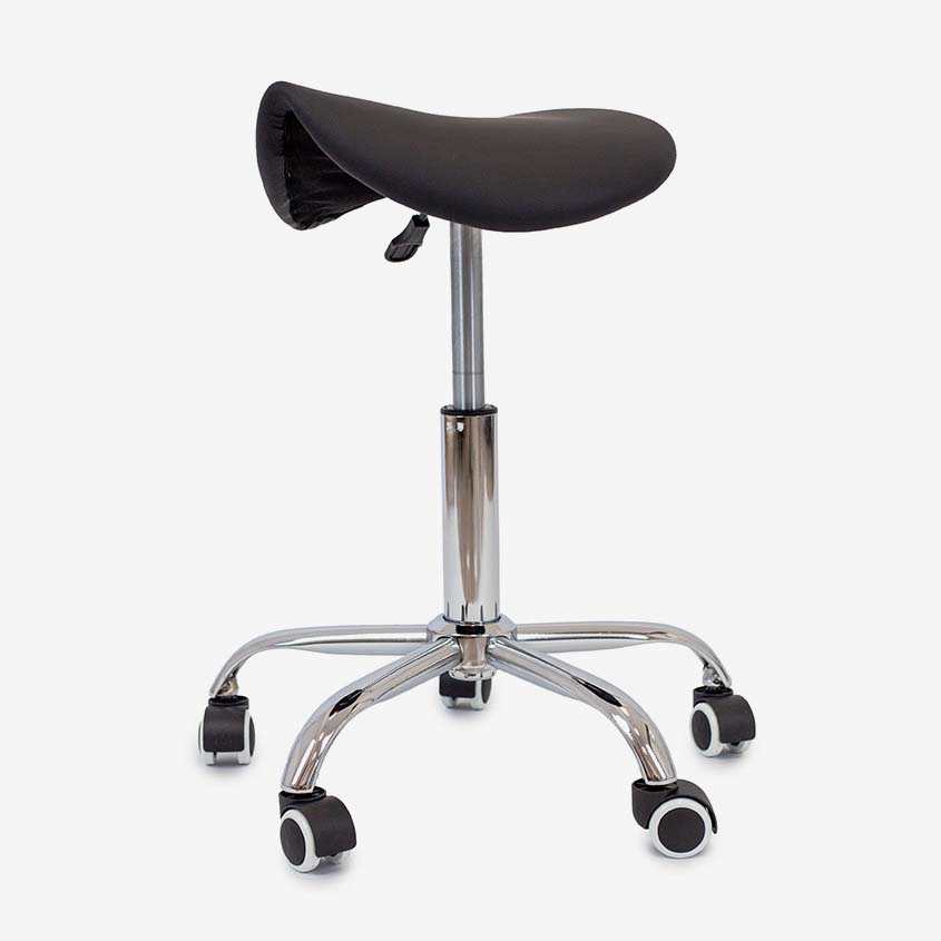 Vrtljiv stol – jahač s koleščki ima anatomsko oblikovan sedež, kar omogoča odlično oporo in pravilno držo pri sedenju. Izdelan iz visokokakovostnega trpežnega umetnega usnja in je nastavljiv po višini s pomočjo hidravlike.